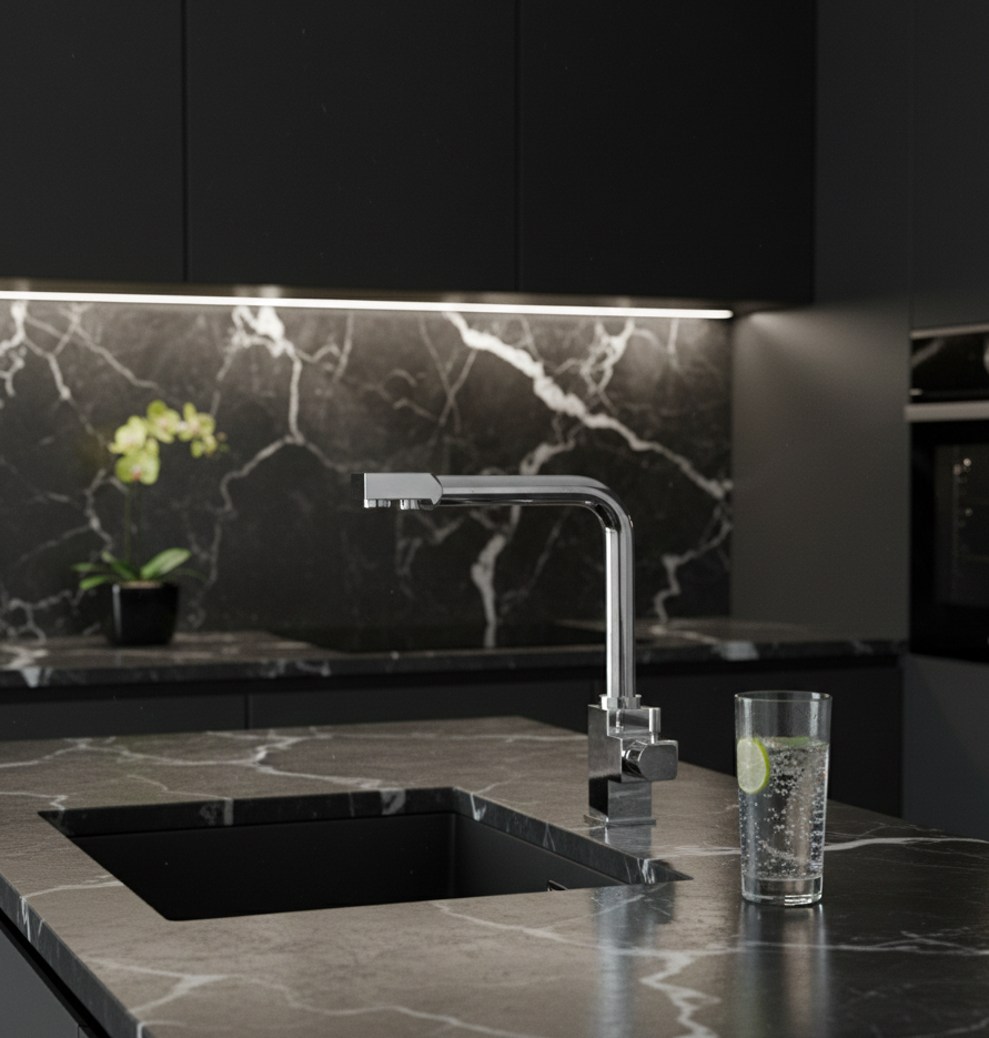 Espaces professionnels (Kitchenettes) : Offrir une solution d'eau filtrée élégante et peu encombrante aux clients ou employés.