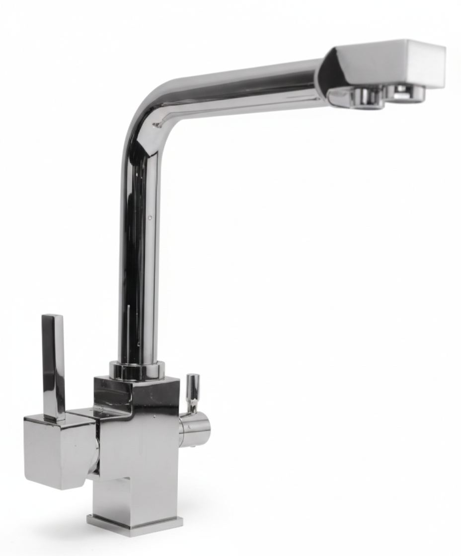 Le robinet de cuisine 3 voies GLIANO (Référence BR305-C) est un modèle premium qui se distingue par son esthétique contemporaine et sa grande fonctionnalité. Conçu pour simplifier votre quotidien, ce mitigeur en finition Chrome brillant est l'accessoire indispensable pour toute cuisine équipée d'un système de traitement de l'eau (osmoseur ou filtre sous-évier).