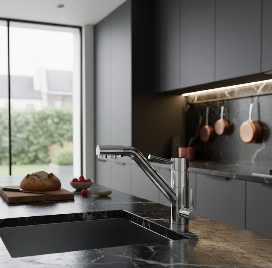 Rénovations haut de gamme : Pour apporter une fonctionnalité supplémentaire (eau purifiée) sans multiplier les travaux de perçage.