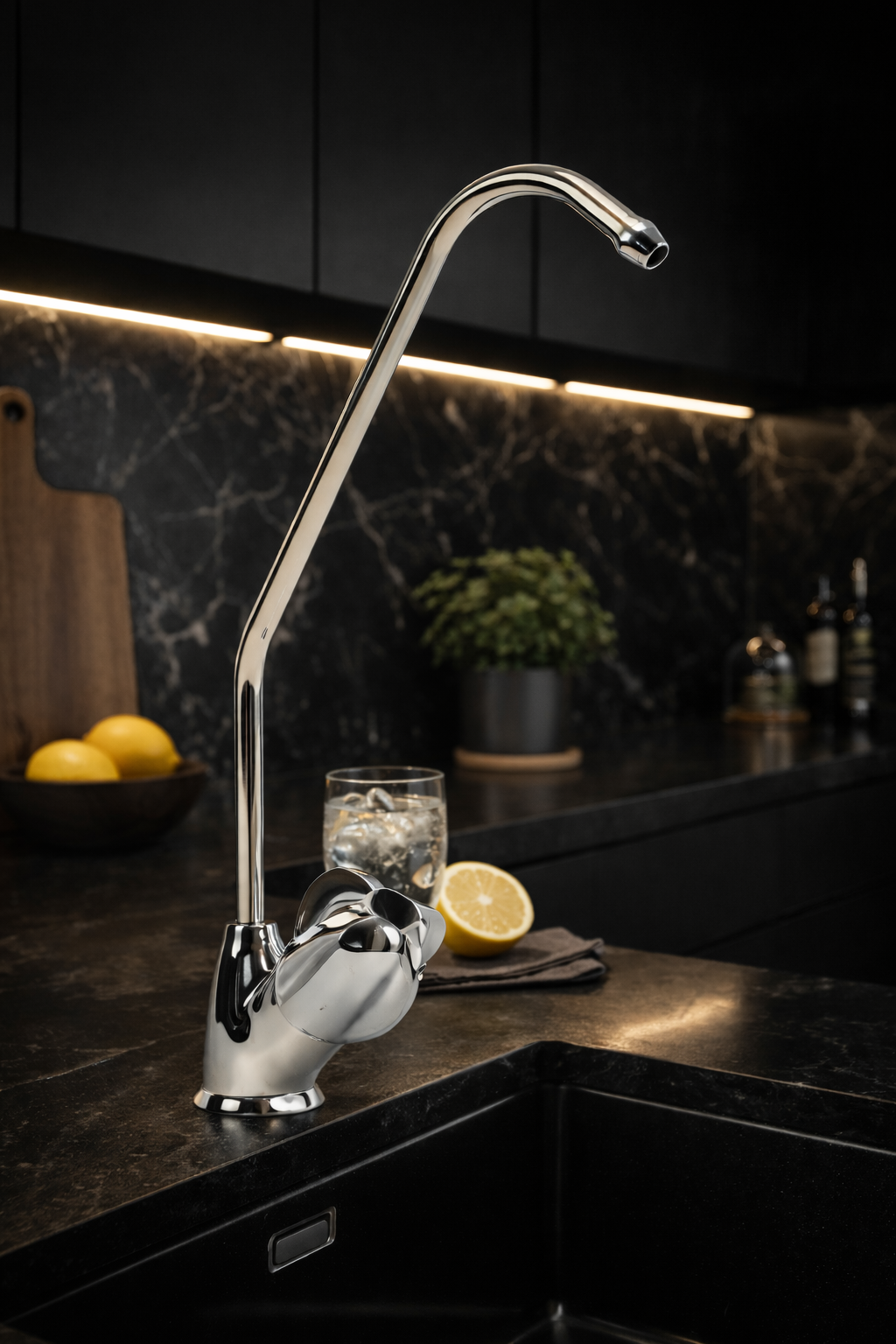Son design classique et intemporel mise sur la finesse et l'efficacité. Il permet de disposer d'une source d'eau potable purifiée indépendante du reste de votre installation hydraulique. Fabriqué avec des matériaux de haute qualité, il assure une distribution fluide et sécurisée, sans altérer les propriétés gustatives de votre eau filtrée.