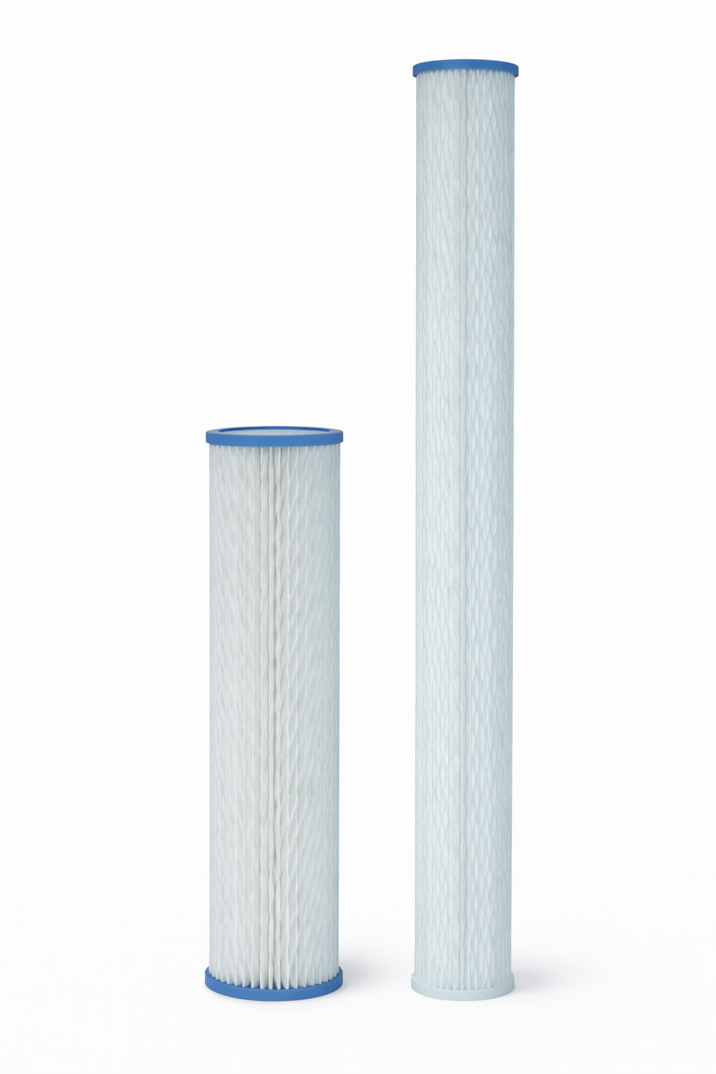 La cartouche AQUAPRO (Référence PR-APP-10-10) est un filtre à sédiments robuste conçu pour l'élimination des matières en suspension dans l'eau. Grâce à sa structure plissée, ce filtre offre une surface de contact bien plus importante qu'une cartouche classique, ce qui lui permet de traiter des volumes d'eau élevés tout en conservant une excellente durée de vie.
